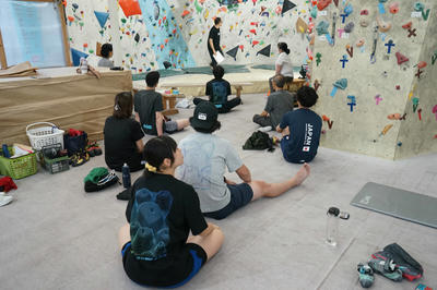 合間では突然の前屈選手権も開催され、今回も賑やかで楽しいクライミングとなりました。