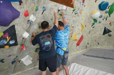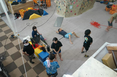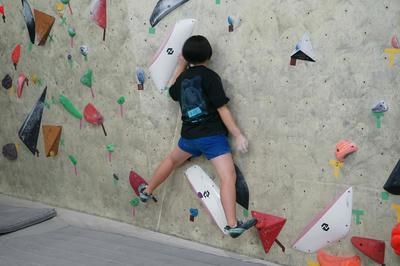 クライミングも初とのことでしたが果敢にトライを続けて、初挑戦にして早くも黄色テープの課題に入っていました。すごい!