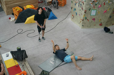7月に続き二度目の参加の岡山のパラクライマーは、参加連絡の際の「リードをやりたい」との宣言通り、さながら“ジャパンシリーズの前哨戦”と言わんばかりのリード連投をしていました。