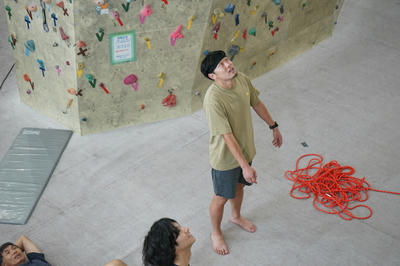 よって8月はまっさら新ルートにセットされた一階ボルダー壁での開催です!もちろんリード、トップロープもできますので、皆さん奮ってご参加ください。