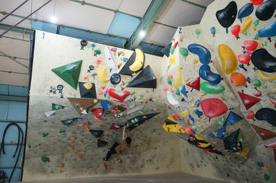 そして今回は久々の、二階ボルダー壁をメイン会場にしての開催でした。