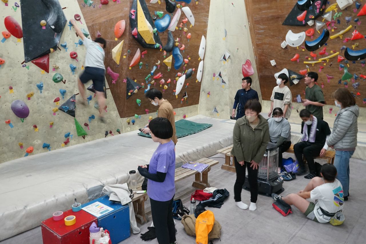 前日までクライムセンターceroを会場に国体選手選考会を兼ねたスポーツクライミングの大会が開かれており、その関係で一階ボルダー壁は使用不可。よって来月は二階ボルダー壁をメイン会場として開催します。