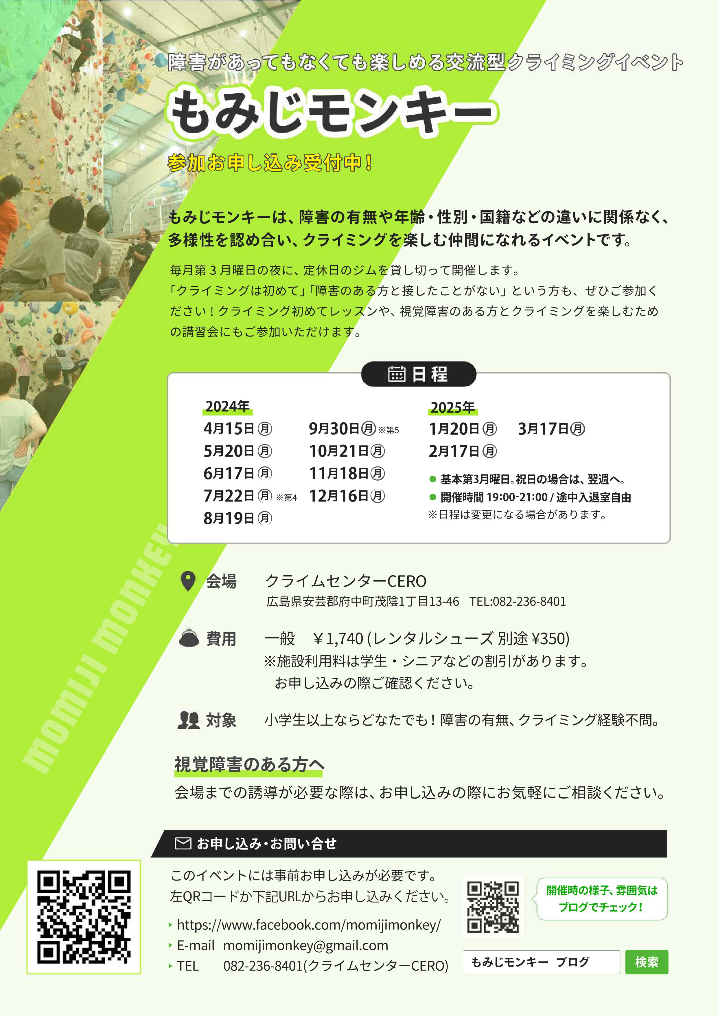 クライミング経験があってもなくても大丈夫。障害や様々なハンデがあってもそれは「多様性」。みんな誰でも最初は「初心者」。気軽に遊びに来て下さいね。