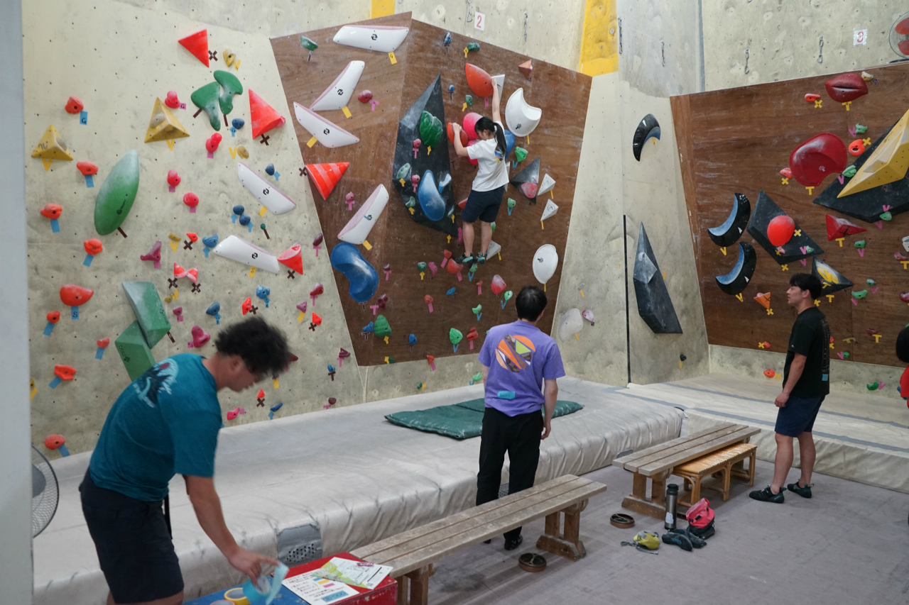 今月は1階ボルダー壁がメイン会場。先月ホールドセット中だったので今回まっさら新ルートでお出迎えです。