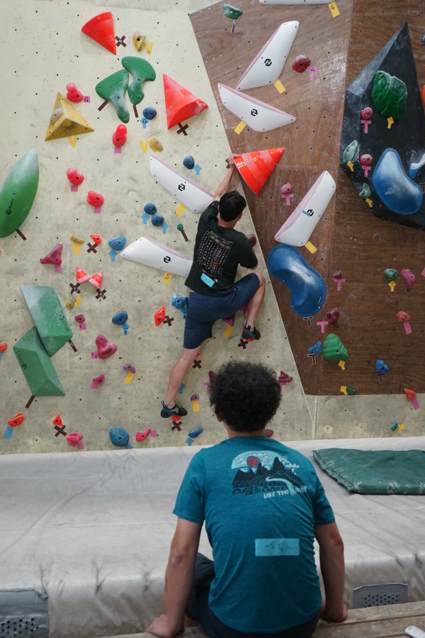 みな思い思いの課題に挑みつつ、他の人のトライには「ガンバ!」の声を送っていました。