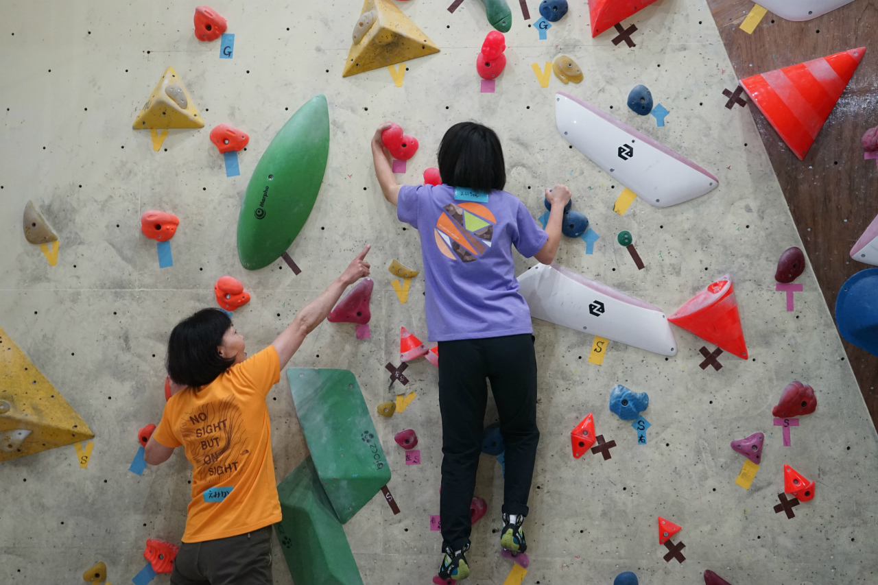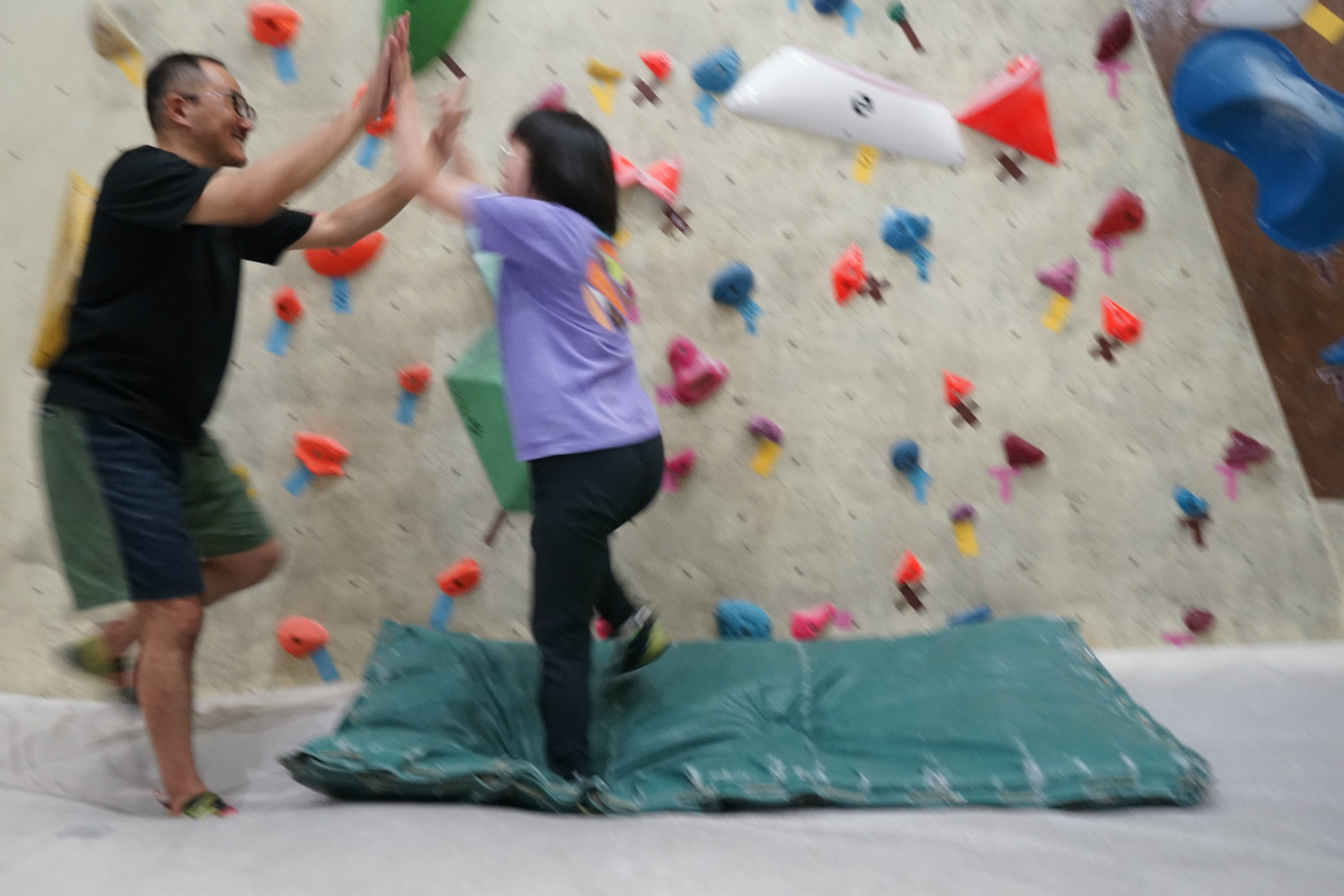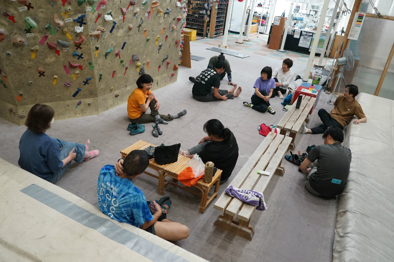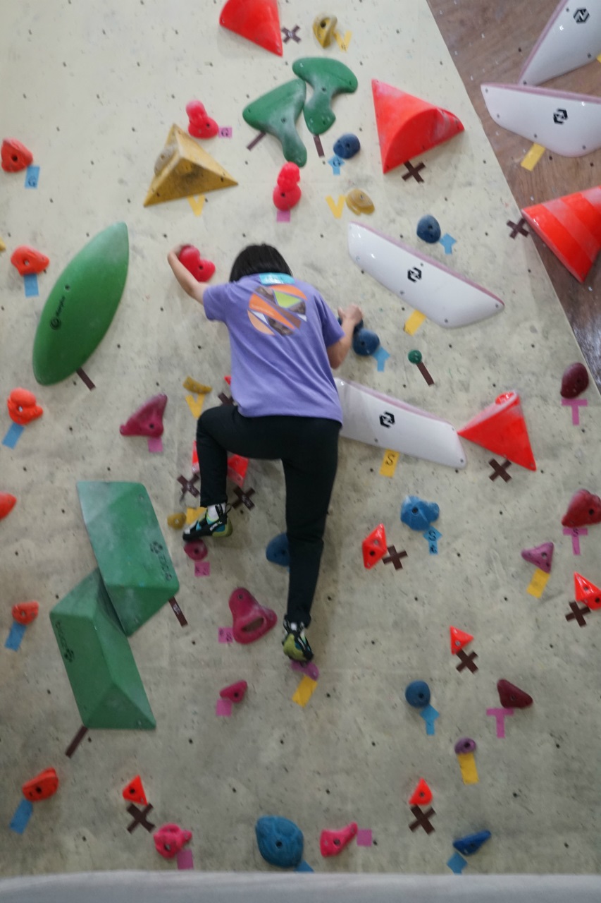 先月に続き今月も1階ボルダー壁がメイン会場でしたが、予定が合わなかったり結膜炎で外出控えたりで先月は来られていなかった方もおられたので、それなりに新鮮に楽しむことができました。