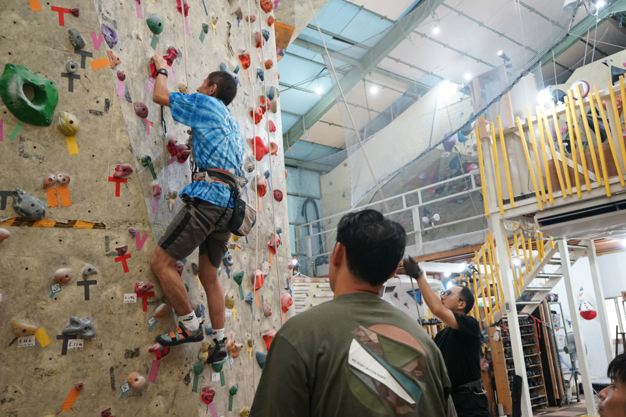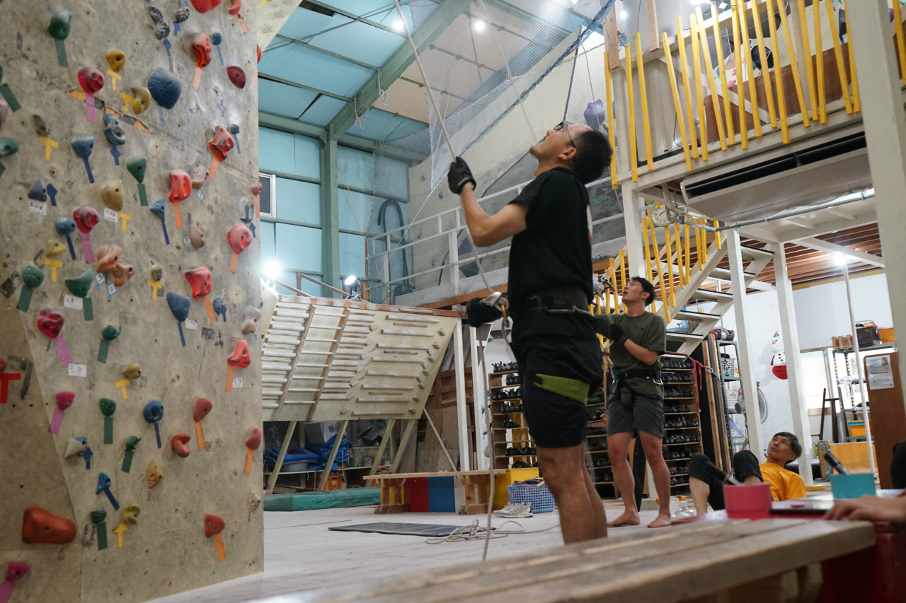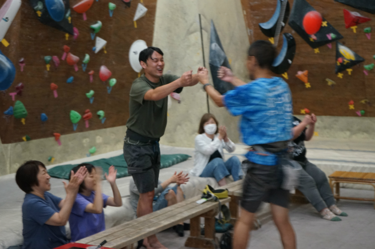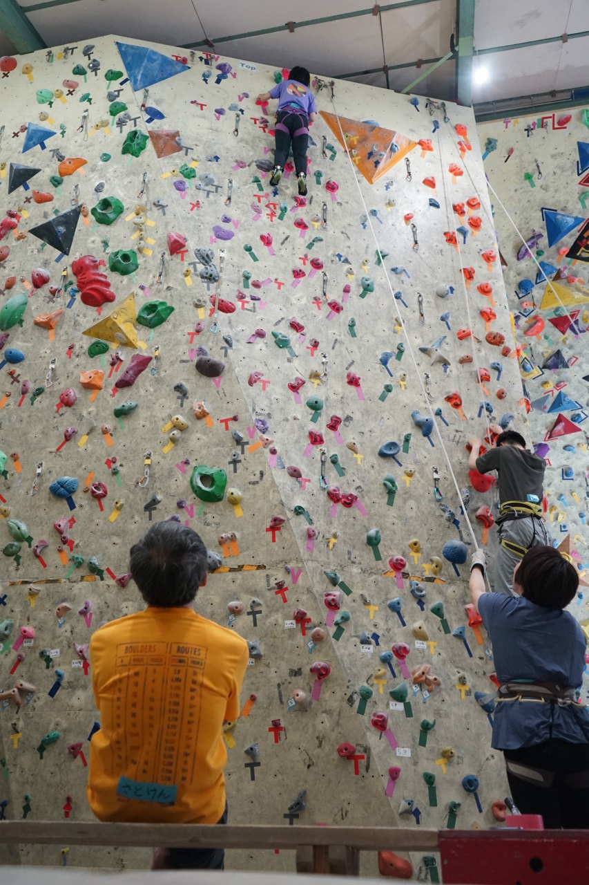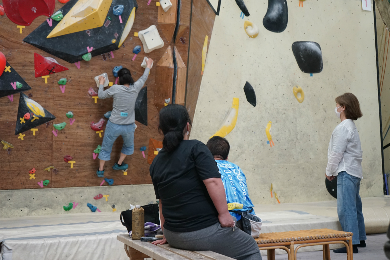 視覚障害がある参加者のクライミングの際はサイトガイドもつけて、さながら大会の時のような雰囲気に。「ロープを使ったクライミング自体が初めて」という方も、何だかんだで2本連登でフィニッシュという結果に、普段はボルダーが中心だけど、ロープもやっぱり楽しいよなと思った次第です。