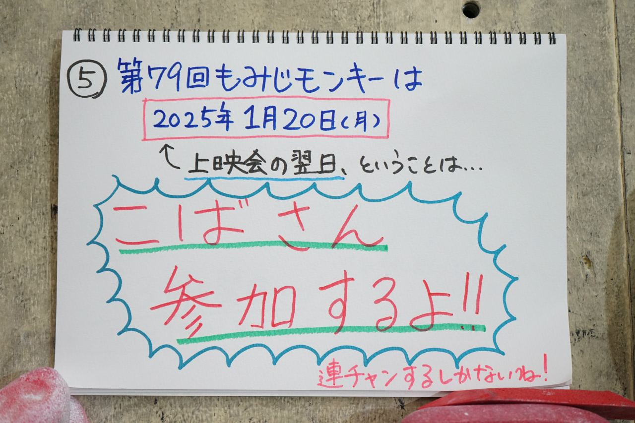 次回のもみじモンキーは【 2025年1月20日(月) 】です!