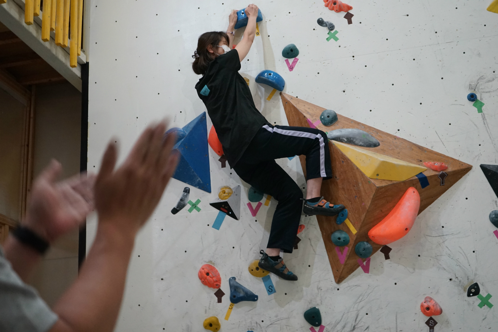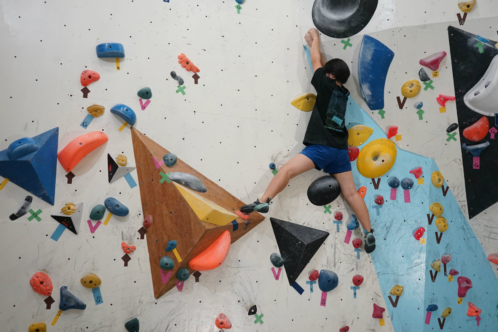 前回は久しぶりの2階ボルダー壁開催でしたが、今回はいつもの1階ボルダー壁が会場。ホールドチェンジも完了してまっさら新ルートがズラリ揃って我々を待ち構えてくれていました。