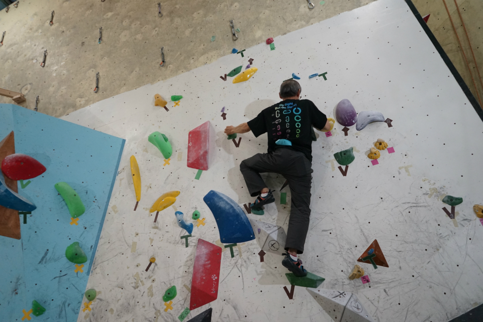 我らがホームのクライムセンターCEROは今年はホールドチェンジのサイクルが短めで、今回も1階ボルダー壁は新セットでの開催。