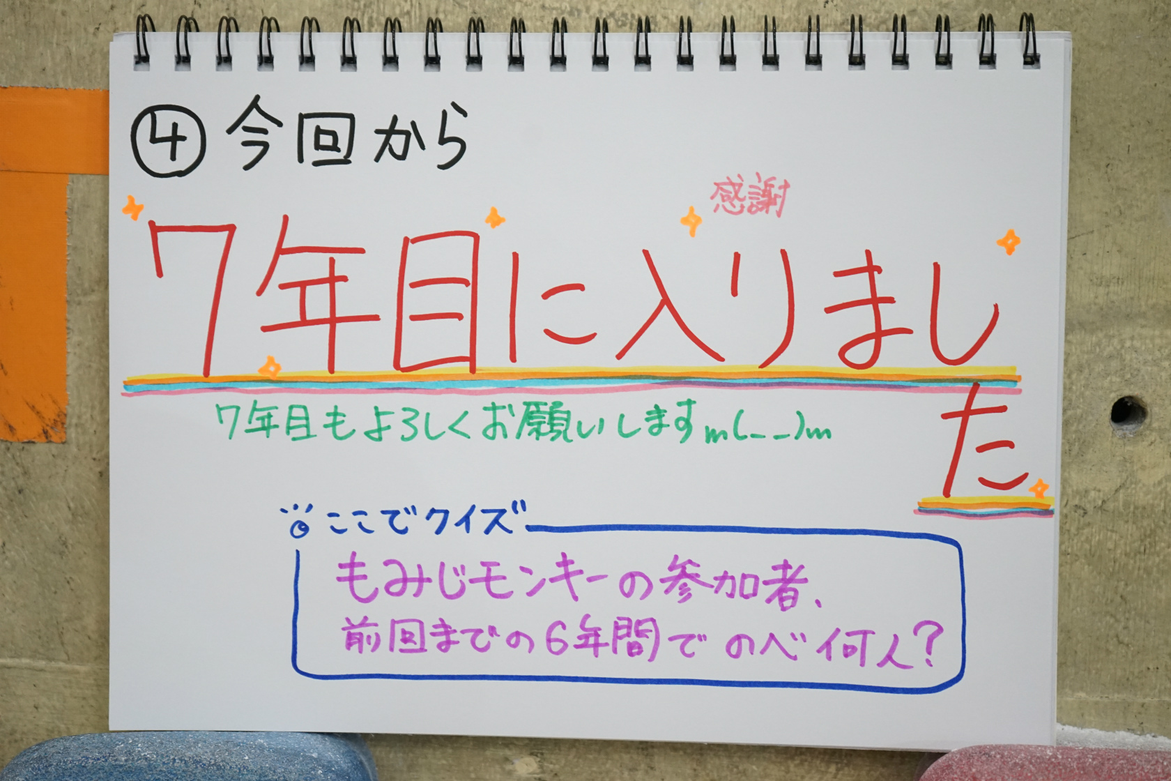 今回は第65回、うっすらキリが良い何かの記念の回でしたが、その実態は平静モード。どノーマルないつも通りの開催でした。普段があるから記念日が特別となり、基礎があってこその応用、ベタがあってこそのシュール。基本を大事にするもみじモンキーをよろしくお願いいたします。