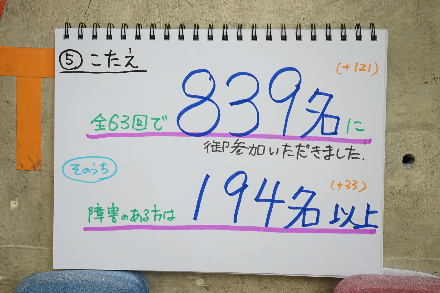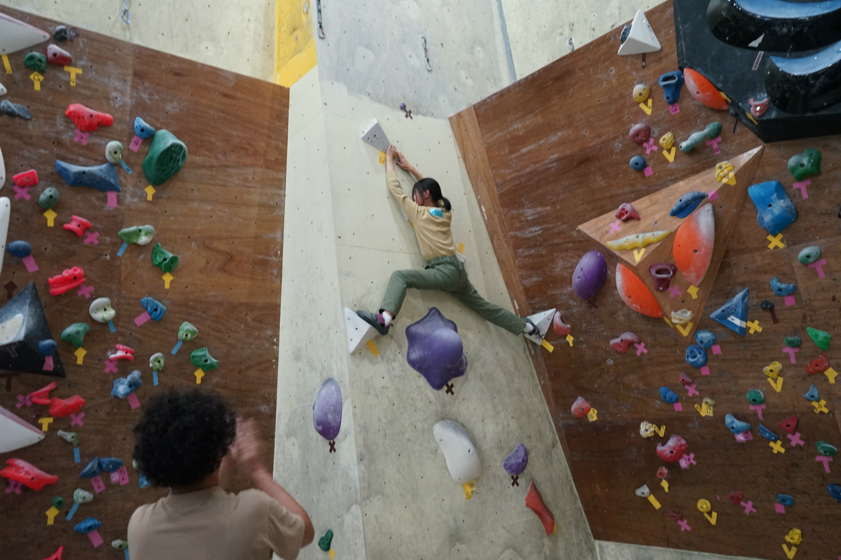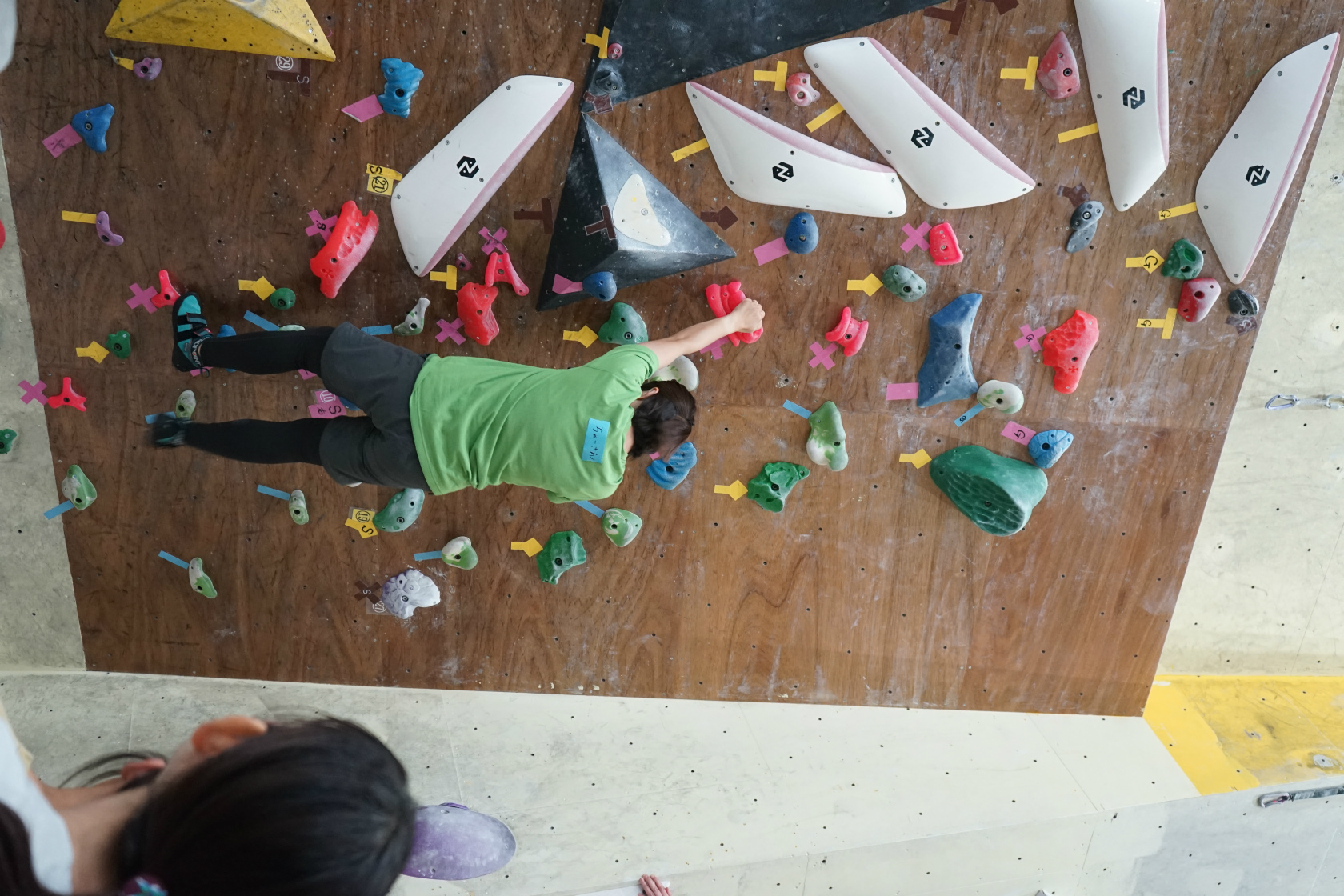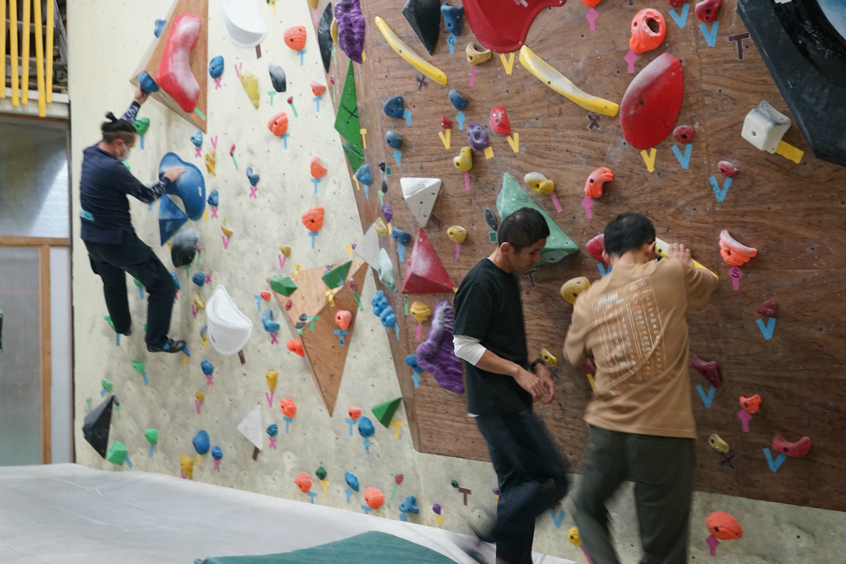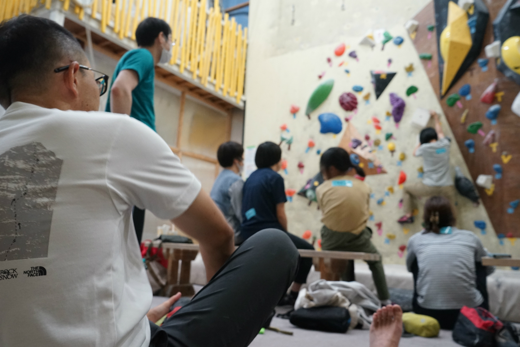 今回は「人数多め」「初参加の方も」「キッズ参加」という“にぎやか条件”が整っていたうえ、メイン会場にしている1階ボルダー壁が今週でホールドチェンジが行われるため現存の課題は“ラストチャンス”でした。