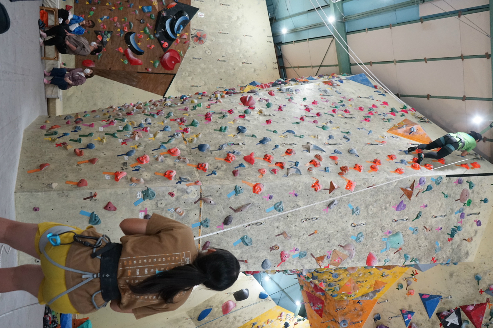 ワタクシ個人的にはキャンパが大の苦手でこの時はビレイ役に逃げていたんですが、力強くグイグイと高度を上げる者あり、超高性能な義足の重量にも負けず登っていく者ありと、ビレイしていてとても楽しいひとときでした。