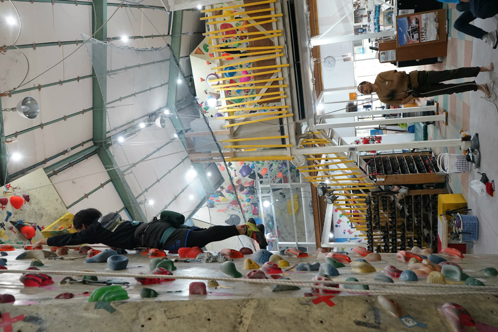 ボルダリングは1階を中心に展開したんですが、スッキリ完登できるルートあり、えっちょっとまって的なアレなルートもありでちょっともうアレでした。