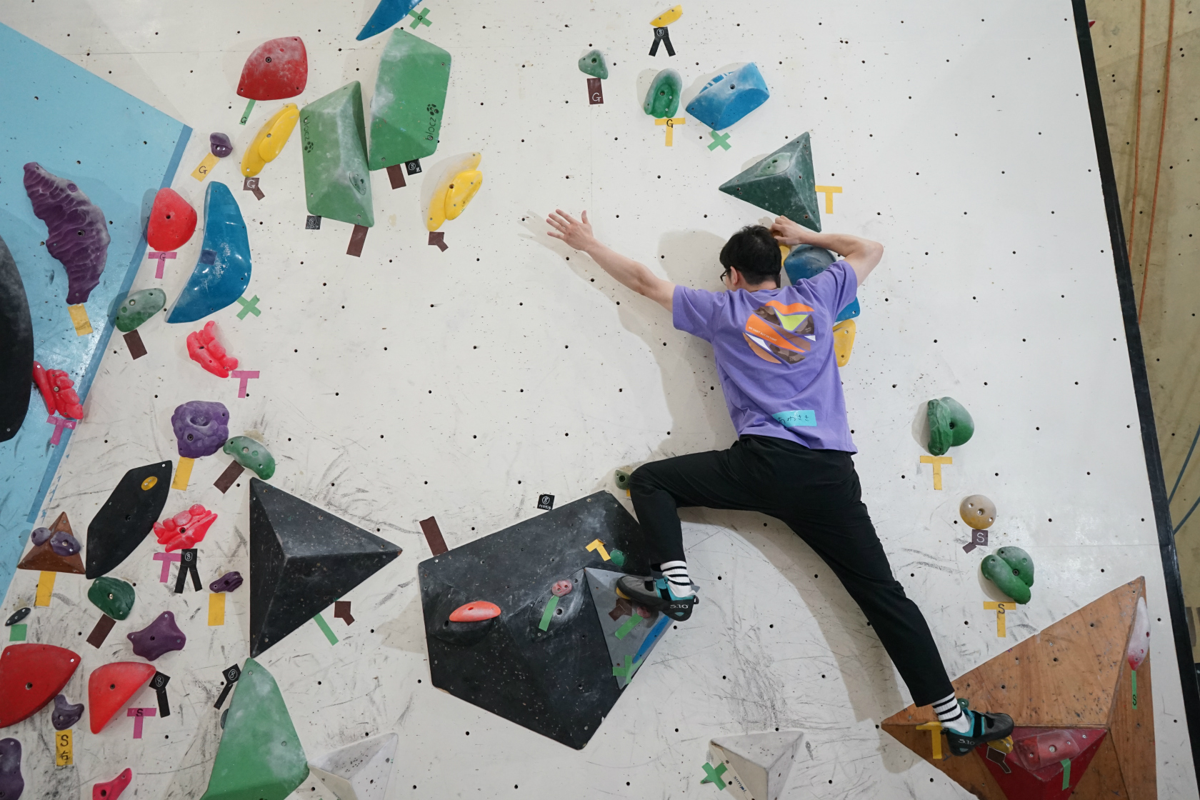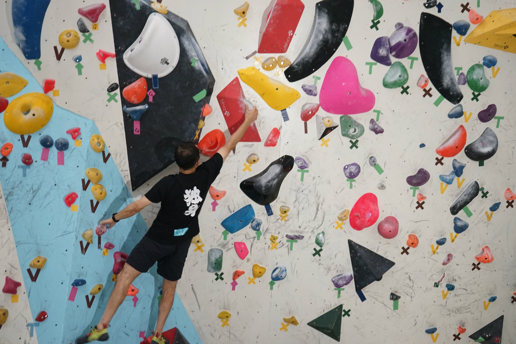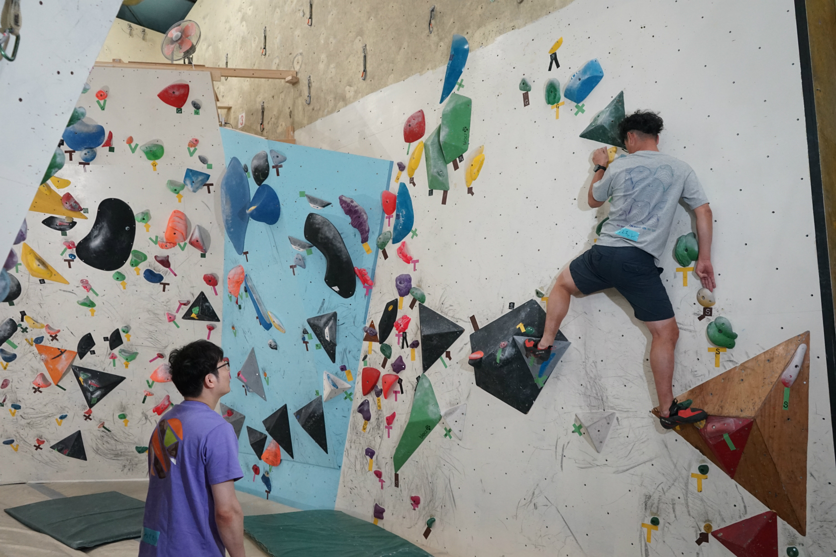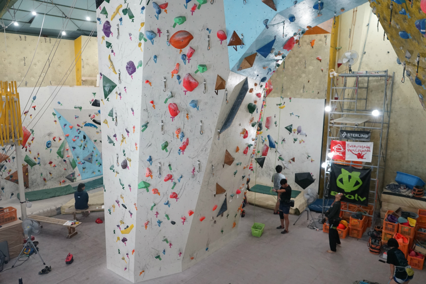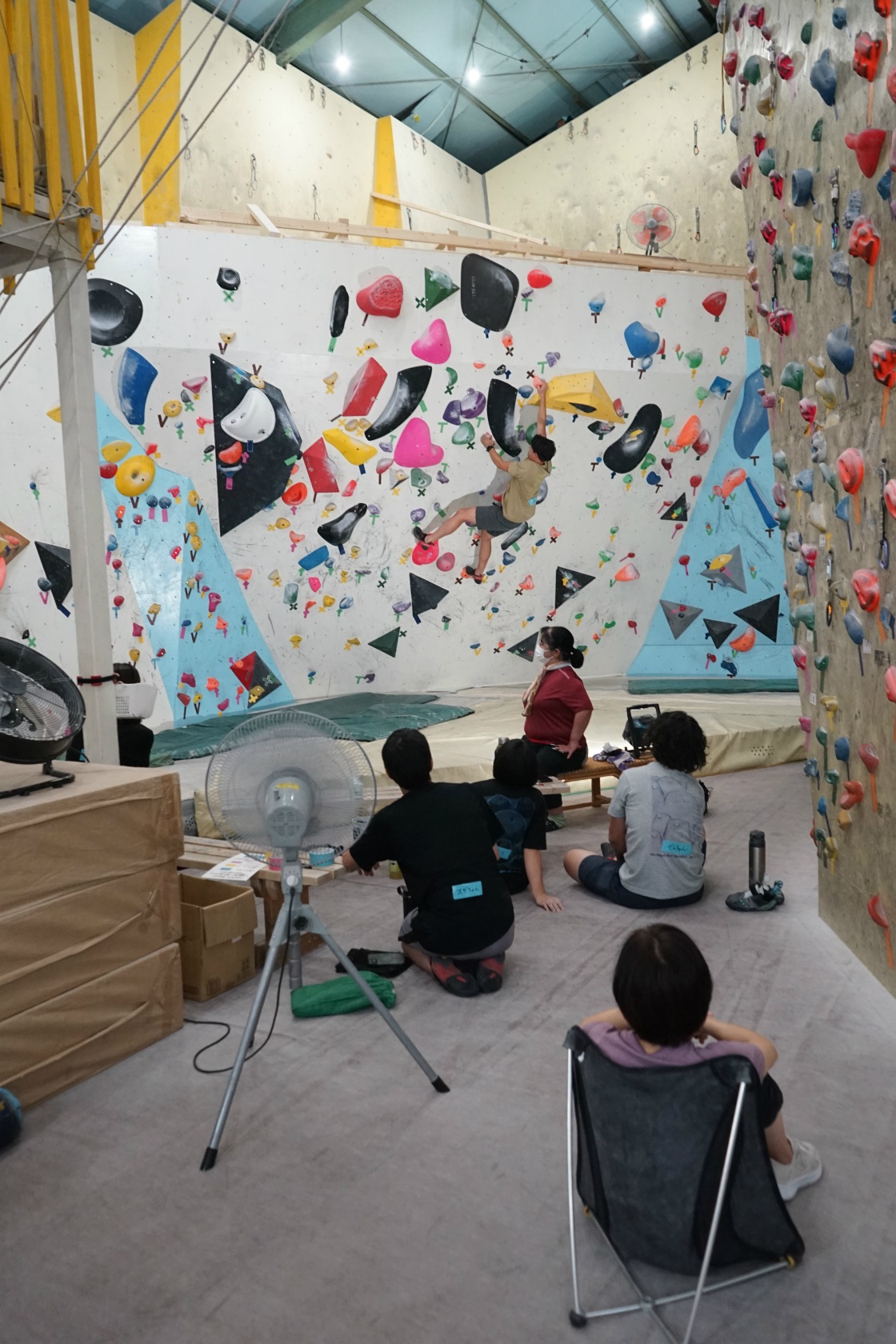 前回は久しぶりの2階ボルダー壁開催でしたが、今回はいつもの1階ボルダー壁が会場。ホールドチェンジも完了してまっさら新ルートがズラリ揃って我々を待ち構えてくれていました。