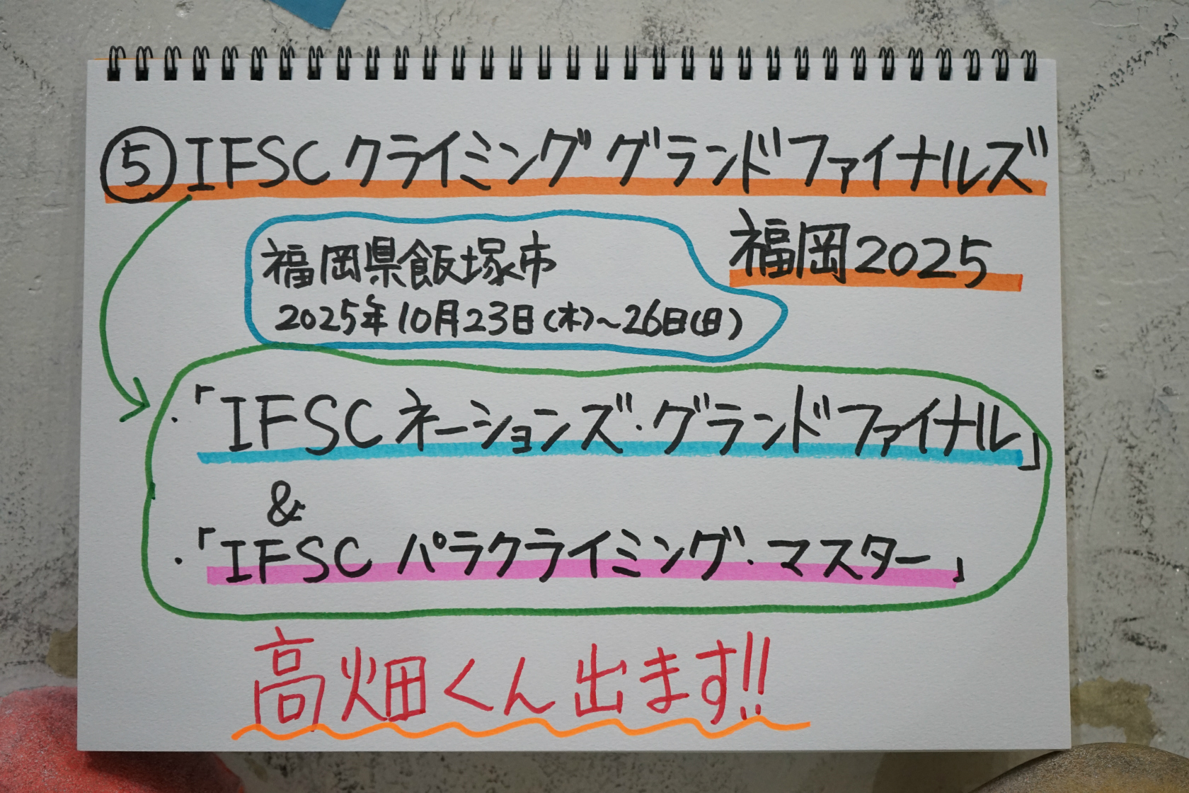 一つ目が「IFSCクライミンググランドファイナルズ福岡2025」。