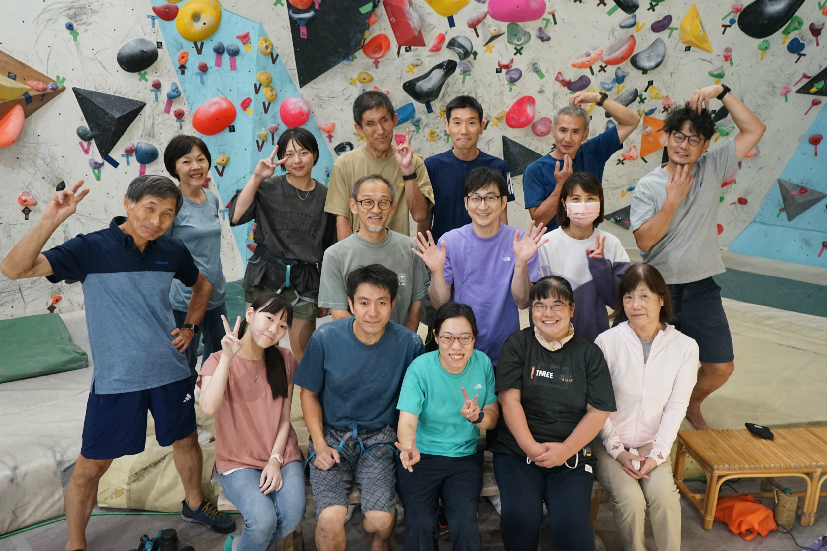 合間では突然の前屈選手権も開催され、今回も賑やかで楽しいクライミングとなりました。