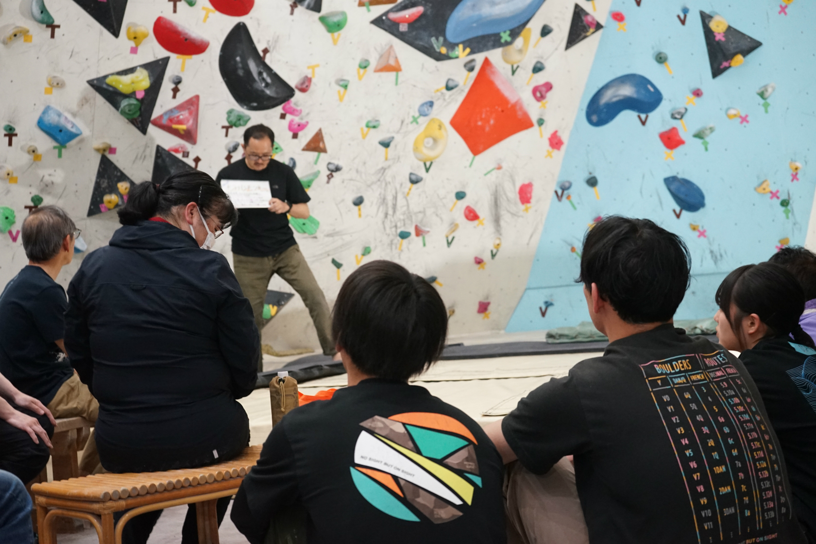 普段から登り慣れているルートでも、ブラインドでは体感での難易度がグッと上がり新鮮。中にはスタートホールドを触った瞬間に「これあのルートじゃーん(困)!」と叫び声が出るなど、ドタバタ楽しくクライミングをしました。