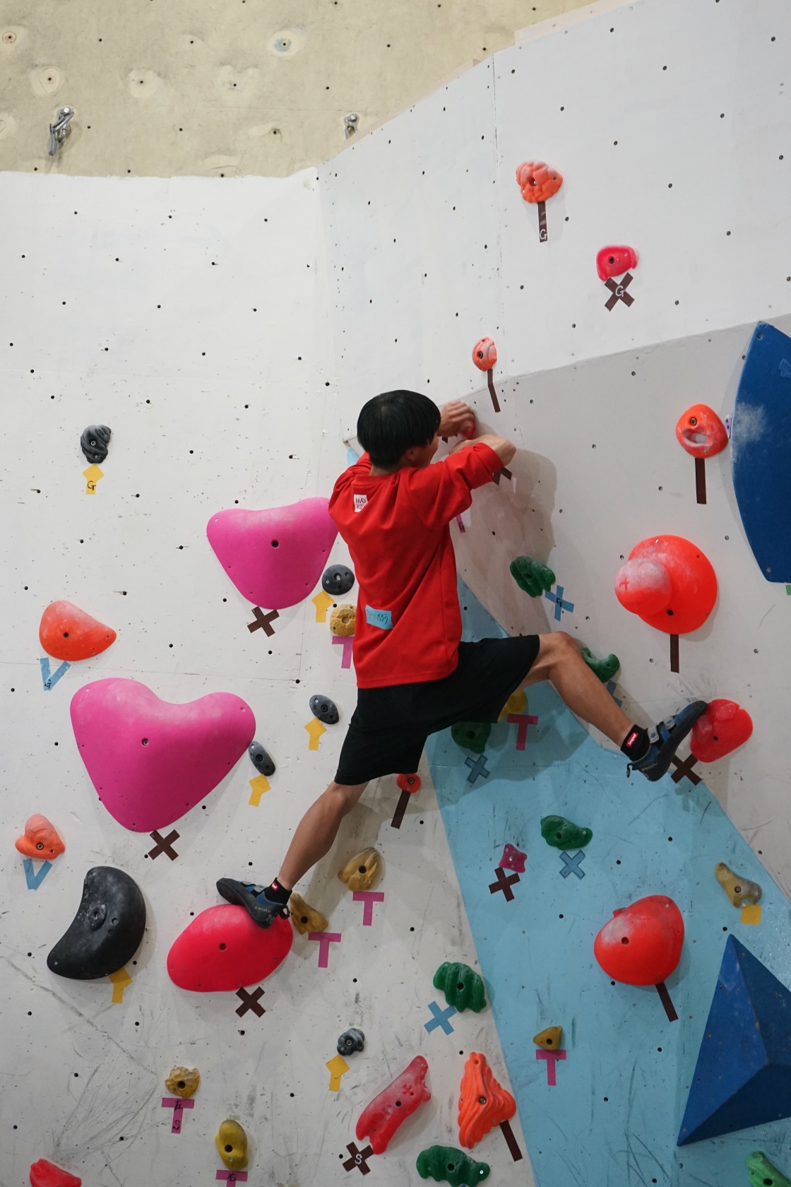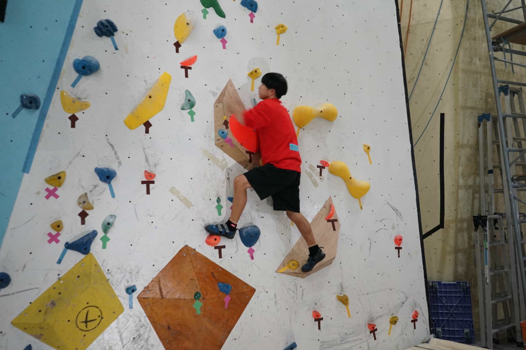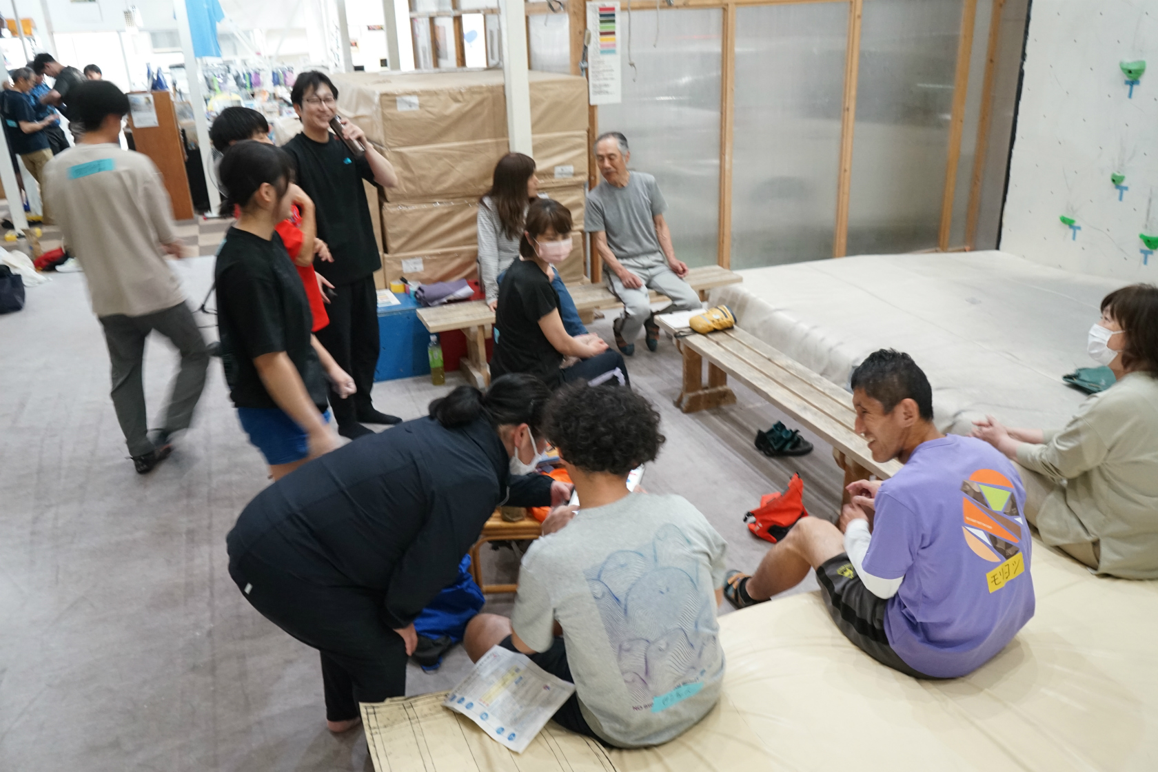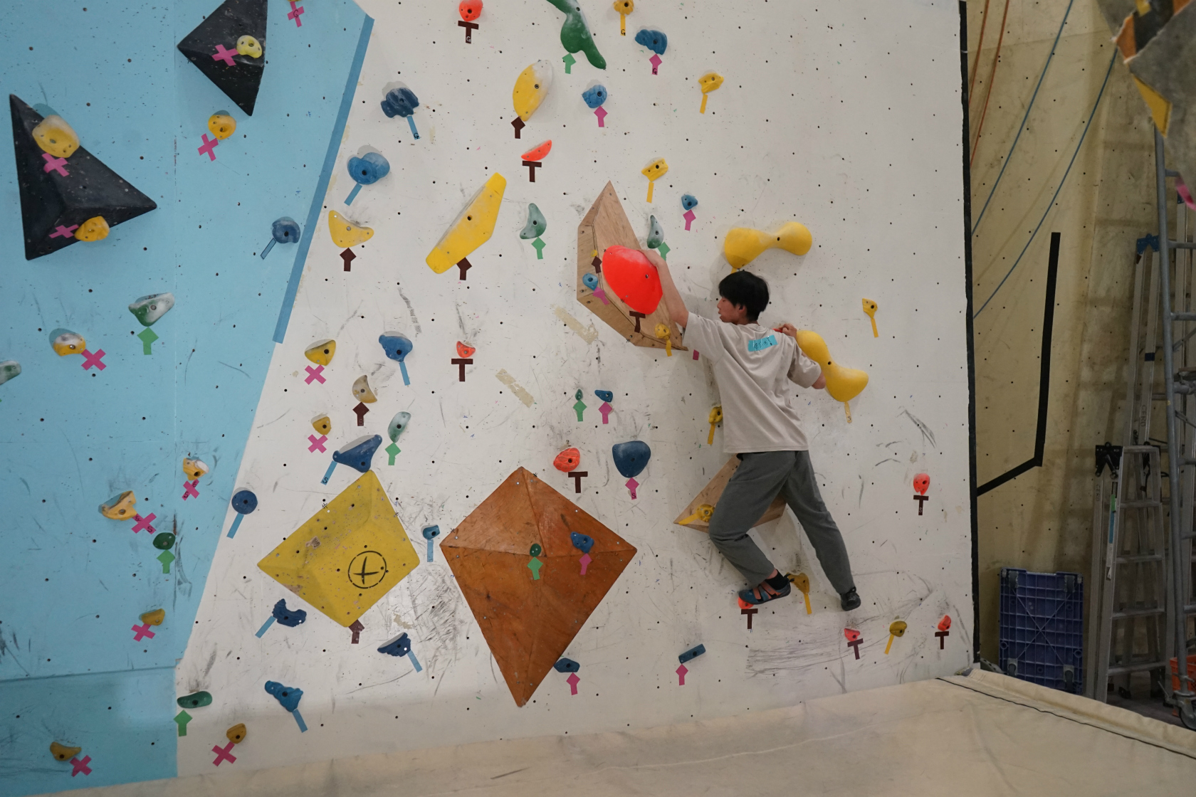 前回開催からの間に二階ボルダー壁とリード壁大ルーフではルートチェンジが実施され、一階ボルダー壁に至っては壁そのものの改修工事が施されて見る影もないガラッと印象が変わっています。