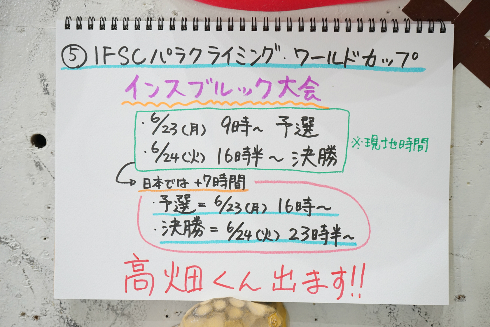 冒頭のお知らせコーナーでは、いよいよシーズンが開幕したパラクライミングの国際大会について。