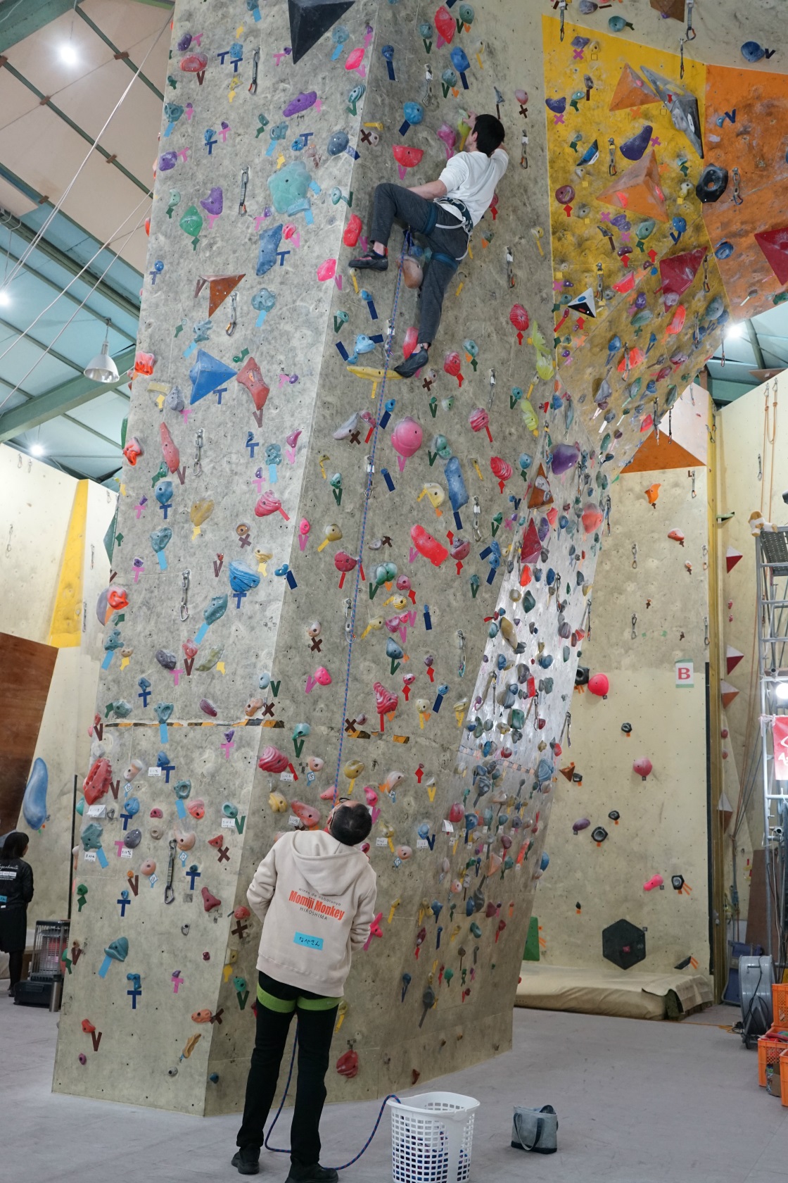 「80回の節目って聞いたら、ねえ」とパラクライミング男子RP1クラス日本代表の岡田卓也さんも先月の第79回に続けて参加。また初参加&初ロープという方も来てくれて、今回もにぎやかなもみじモンキーでした。
